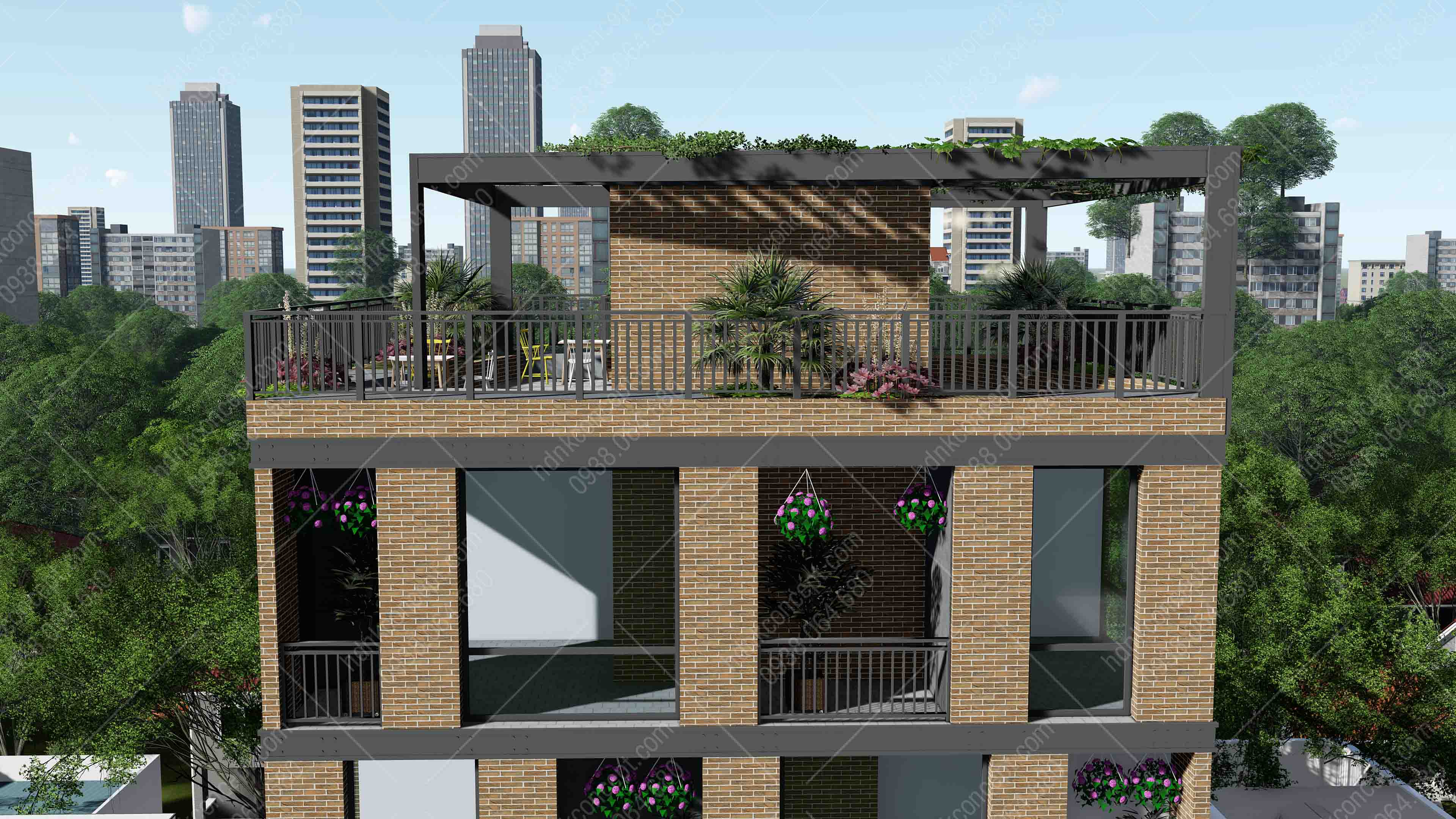 trên nóc sân thượng là dàn dây lên kết hợp che nắng cho công trình vào buổi trưa . ! quán cafe xinh đẹp sẽ mọc ra ở đây.