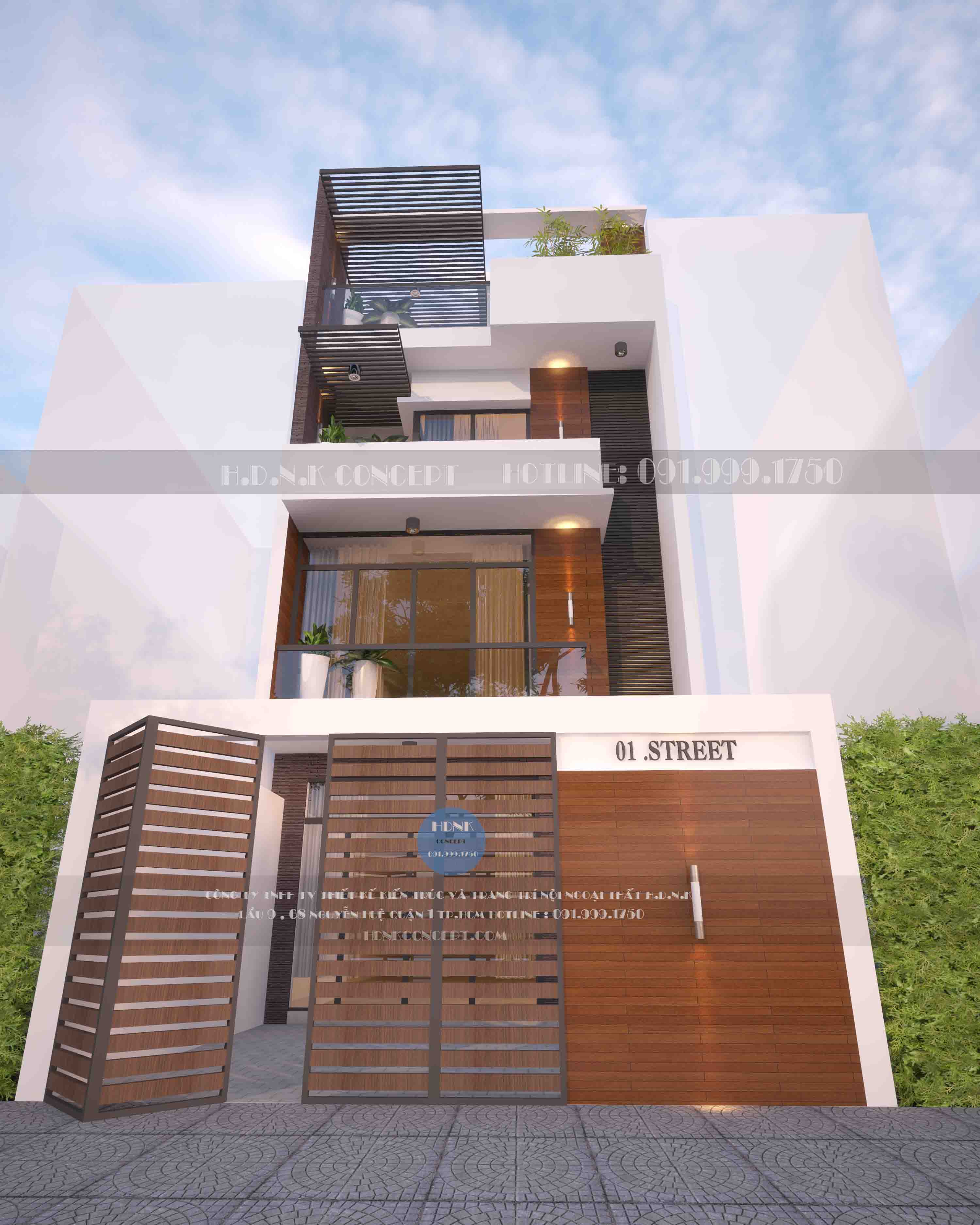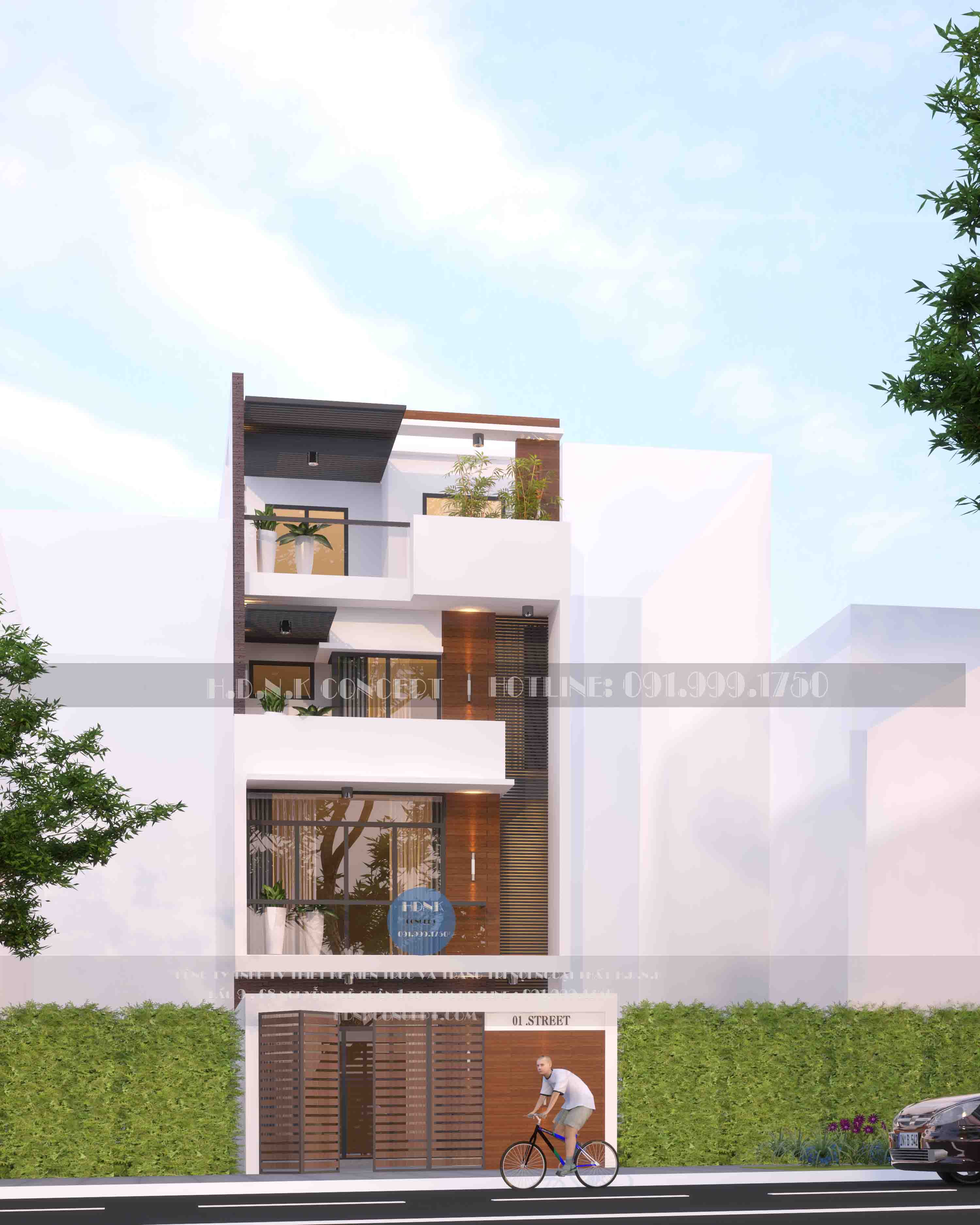 Ngôi nhà phố được thiết kế 1 trệt 1 lửng 2 lầu 1 sân thượng. Khi thiết kế thi công hoàn thiện xong chủ nhà đã khen tập thể kiến trúc sư công ty HDNK chúng tôi.
